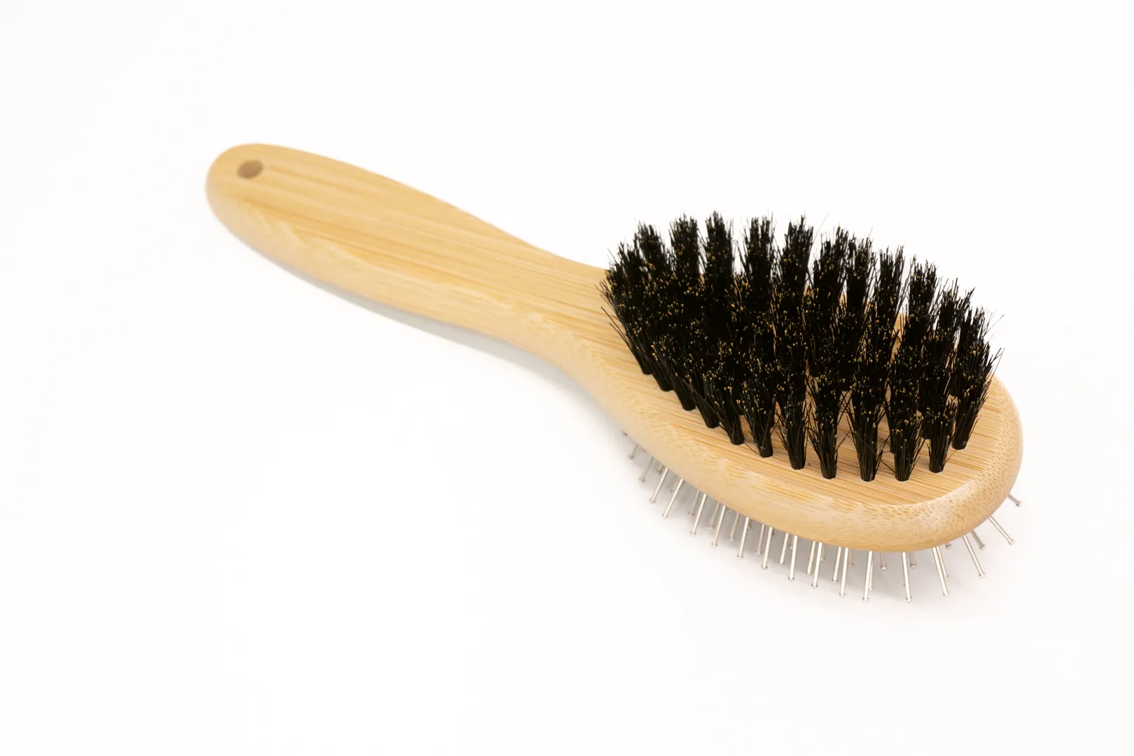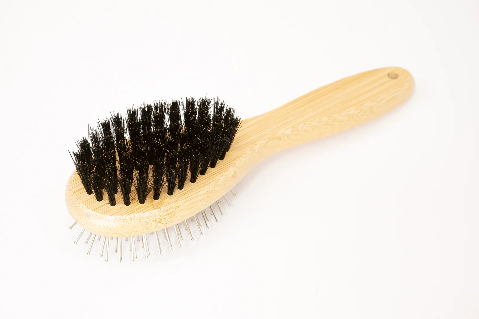 • For your short-haired companions, simply flip to the bristle side. The dense boar bristles are a great choice for removing fine, loose fur and dander from short coats, leaving them smooth and sleek.